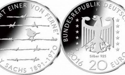 Se pone a la venta la moneda de 20 euros en plata conmemorativa del 125 aniversario del nacimiento de la poetisa Nelly Sachs. Además en los próximos días se abre el plazo de reserva para las acuñaciones de 20 y 100 euros en oro que se emitirán en los próximos meses.