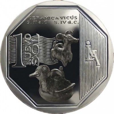Desde el pasado 15 de diciembre, la moneda peruana deja de denominarse Nuevo Sol para ser simplemente Sol. La medida se irá aplicando progresivamente y no ha afectado aún a acuñaciones como la de esta nueva emisión de la serie “Riqueza y Orgullo del Perú”, dedicada a la cerámica Vicús.