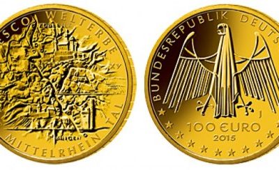 El Valle Superior del Medio Rin es el tema elegido para esta moneda de 100 euros, englobada en la serie dedicada al Patrimonio Cultural de la UNESCO, y que se ha puesto en circulación el 1 de octubre.