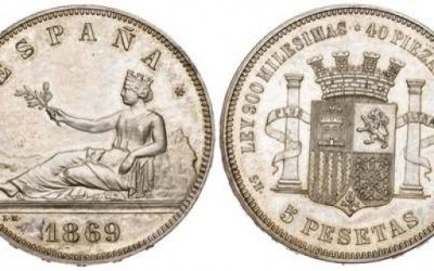 Las cinco pesetas de 1869 se convirtieron en la estrella de la subasta en sala de la firma madrileña que se celebró el pasado lunes 20 de abril, al ser rematadas en 39.000 euros, muy por encima de su precio de salida.