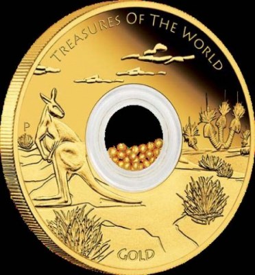 La serie Tesoros del Mundo de la ceca de Perth se ocupa en esta emisión de la riqueza en oro de Australia, con un diseño en el que incorpora granos de este metal precioso en monedas de una onza.