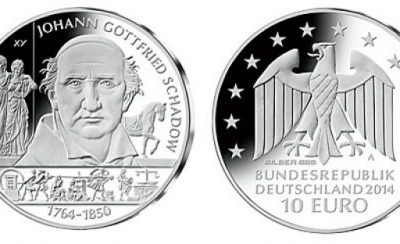 Nueva moneda conmemorativa alemana para coleccionista que recuerda el aniversario del famoso escultor clasicista berlinés. Con facial de 10 euros, está acuñada en una aleación de plata de 625 milésimas.